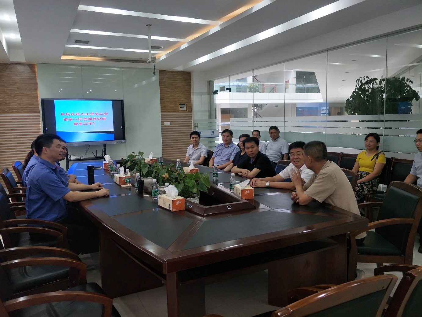 8月13日,市人大副主任、市總工會黨組書記、主席周美祥,市總工會副主席徐勝、市總工會辦公室主任楊益年等一行蒞臨我司調(diào)研企業(yè)工會組織規(guī)范化建設(shè)。彭澤縣委副書記秦嶺,縣委常委、工業(yè)園區(qū)黨委書記華樺,縣人大常委會副主任、縣總工會主席吳建忠隨同調(diào)研。公司工會主席陳育亮、工會委員金堅(jiān)雄、張雯等陪同接待。