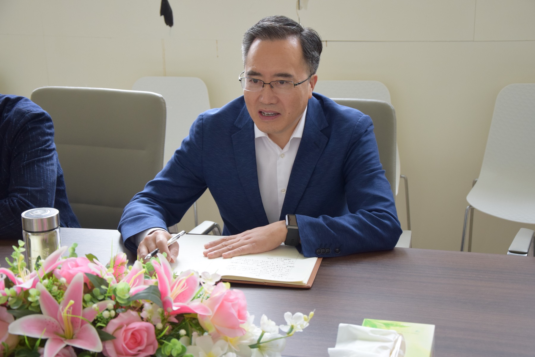 會上,趙文中主席詳細聽取了企業經營發展情況的介紹,深入了解了企業在產品研發銷售、智能化改革、物流運輸、員工管理、人才引進等方面的情況,詢問企業存在的難題。