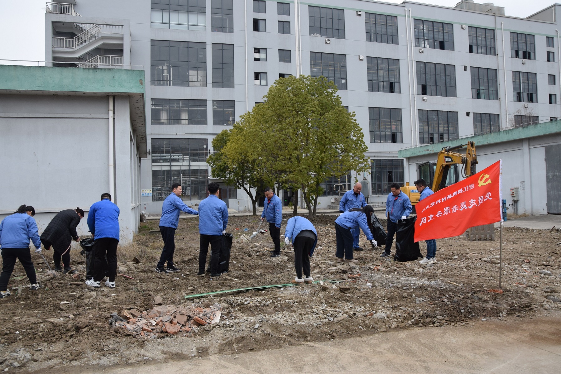 會后,黨員干部開展了美化廠區先鋒志愿活動。