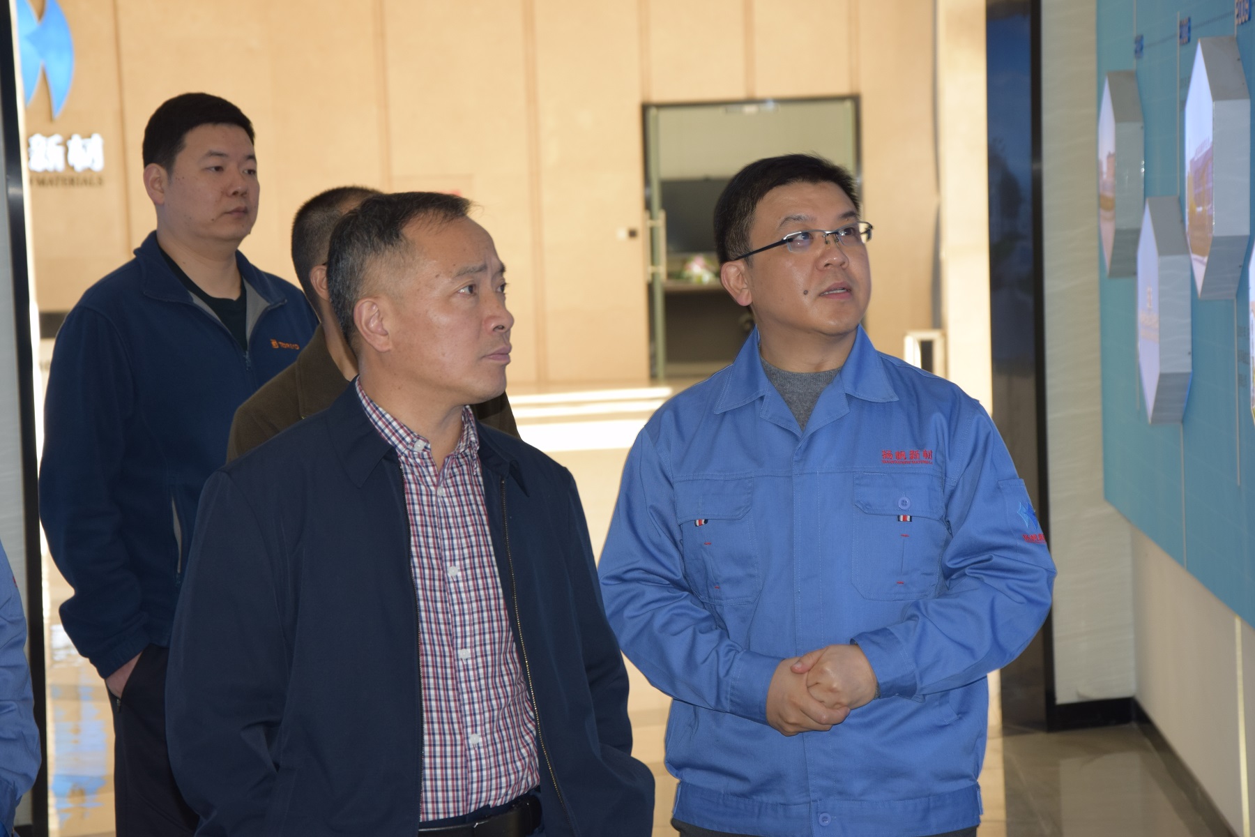 劉潔陽一行參觀了公司展廳并觀看了企業宣傳片,樊彬董事長簡要介紹了揚帆新材的發展定位和目標、公司的發展歷程及現階段產品研發情況,并詳細介紹了公司各產品的功能,市場情況,企業文化及核心價值觀——“仁德創富,成己惠人”。劉潔陽副主任對揚帆新材的發展和對社會作出的貢獻表示高度贊揚。