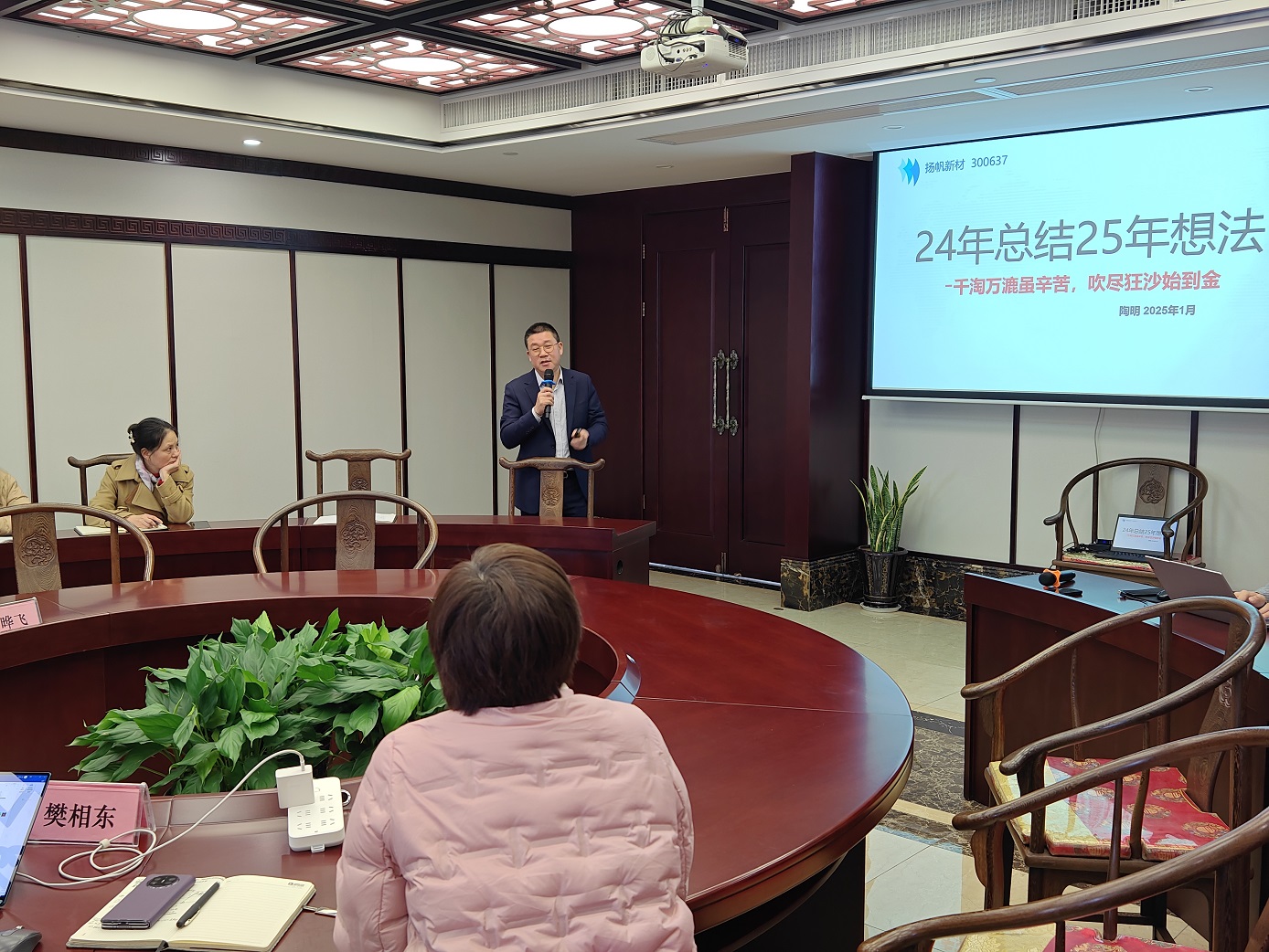 陶明總裁在總結(jié)致辭中肯定了大家在2024年所取得的成績(jī),他指出:“2025年是揚(yáng)帆新材戰(zhàn)略布局的關(guān)鍵一年,將為推動(dòng)公司技術(shù)突破、產(chǎn)業(yè)鏈延伸打好基礎(chǔ),為公司接下來(lái)的布局發(fā)展貢獻(xiàn)力量。2025年將整合公司力量、市場(chǎng)信息與在研項(xiàng)目,加大銷售力度,增加研發(fā)投入,推出更有效率的績(jī)效考核辦法,大力推進(jìn)工廠6S管理,徹底改變企業(yè)面貌,擔(dān)起更多的社會(huì)責(zé)任。”