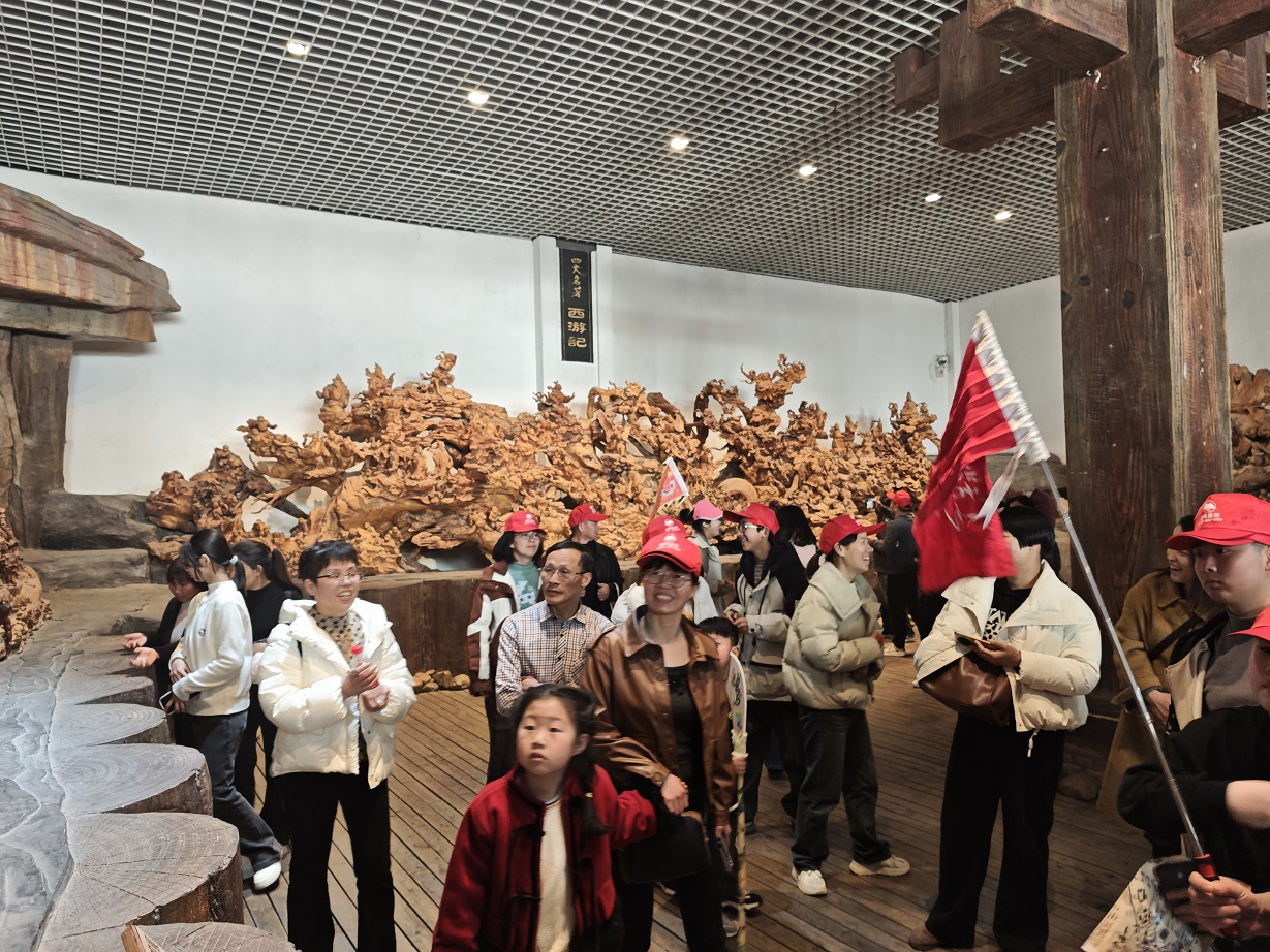 此次出游目的地為安徽太湖縣五千年文博園。抵達(dá)景區(qū)后,大家迫不及待地進(jìn)入文博園,跟著導(dǎo)游的講解徜徉在五千年?duì)N爛文化中:尋根問(wèn)祖文化墻、摩崖瀑布、中華孝道園、中華漢字龍見(jiàn)證古典文化創(chuàng)意;“孔子列國(guó)行”、“老子天下第一”、“釋迦牟尼臥佛”見(jiàn)證儒、道、佛“三教并流”的和諧文化;1500米巨幅歷史長(zhǎng)卷、秦始皇塑像群、茶馬古道,五千年根雕藝術(shù)館——上千件5噸重根雕讓大家感嘆化腐朽為神奇的根雕藝術(shù),萬(wàn)佛塔、華夏愛(ài)情文化園、中華百工坊、百年民俗館、四大名著文化園再現(xiàn)歷史文化的千年滄桑……一期、二期兩個(gè)園內(nèi)景點(diǎn)錯(cuò)落有致,它們濃縮著中華五千年文化的精髓,每一塊磚瓦、每一處雕刻,都仿佛在訴說(shuō)著往昔的故事,吸引著大家紛紛駐足觀賞、拍照留念,活動(dòng)在大家無(wú)數(shù)次的贊美中愉快結(jié)束!