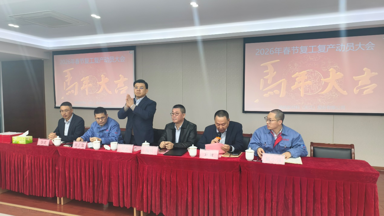 新年伊始,萬象更新。226日,揚帆新材料(浙江)股份有限公司在研究院三樓培訓室隆重召開復工復產暨安全教育培訓大會,旨在統一思想、凝聚共識,為新一年各項工作開好局、起好步奠定堅實基礎。公司董事長樊彬、總裁陶明、浙江基地生產副總郭正國、公關協調中心總監章毅、總裁助理戴小強等公司領導與全體員工齊聚一堂。大會由章毅主持。