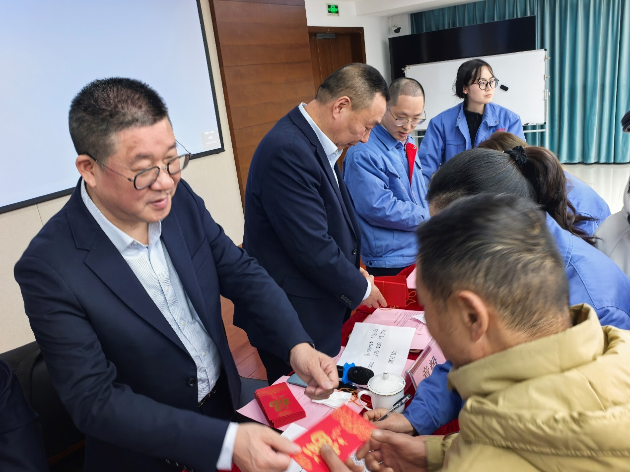 大會最后,舉行了溫馨而喜慶的發紅包活動。公司領導向全體員工派發新年紅包,送上新春的祝福與關懷,將現場氣氛推向最高潮。紅色的祝福傳遞著公司對員工的深切關愛,也寓意著新的一年紅紅火火、蒸蒸日上。