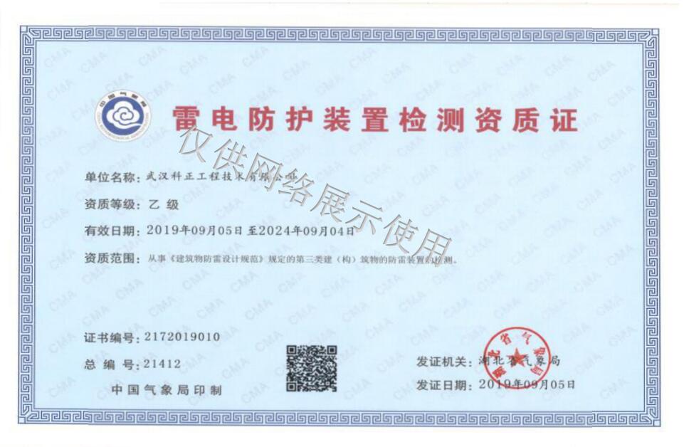 雷電防護裝置檢測資質證書